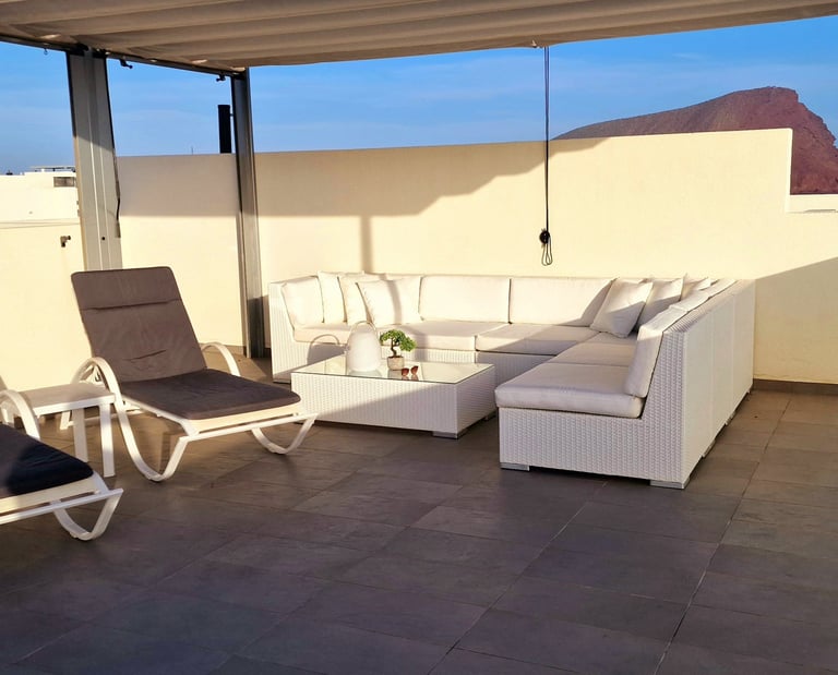 Ontsnap naar ons prachtige vakantie-appartement Las Terrazas in La Tejita, Tenerife! Dit schitterende appartement is dé ideale plek om te ontspannen en tot rust te komen. Met twee ruime privé-terrassen van totaal 100m2 die exclusief tot uw beschikking staan.